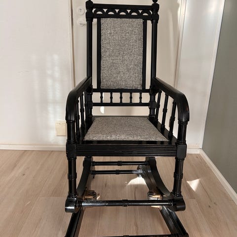 Myydään noin 1850-luvun ajan patinoima ja antiikkivahattu , yli 160v vanha entistetty keinutuoli ,aikansa ylellisyys huonekalu ,sopii esim.sisustus kohteeksi tai käyttöön . Hinta 40e/tarjous ,maksu paikan päällä ja nouto . Sellakka lakattu ja antiikki vahattu alkuperäisellä sen ajan menetelmällä ,hyvä keinua.