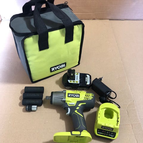 Ryobi one+ 18v iskevä mutterinväännin, laturi ja uusi akku 2.0Ah
