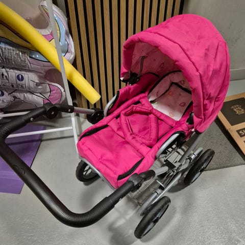 Myydään punaiset nuken vaunut, sänky ja lasten keinutuoli. Hyväkuntoiset ja retrot