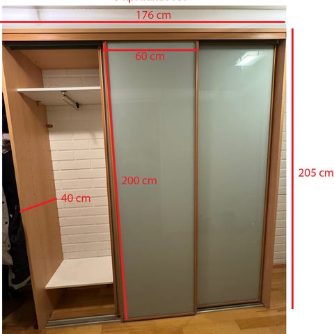 Kuvan mukaiset liukuovet (4 kpl), ylä- ja alakisko sekä päätylevy.