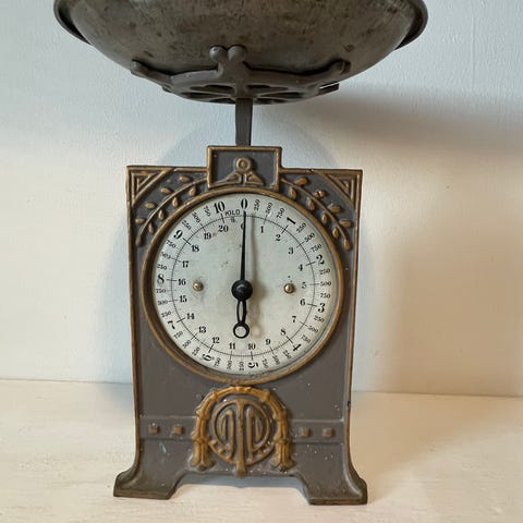 Tästä harvinainen patinoitunut valurautainen vauvavaaka. Mekaniikka toimii. Vain nouto.