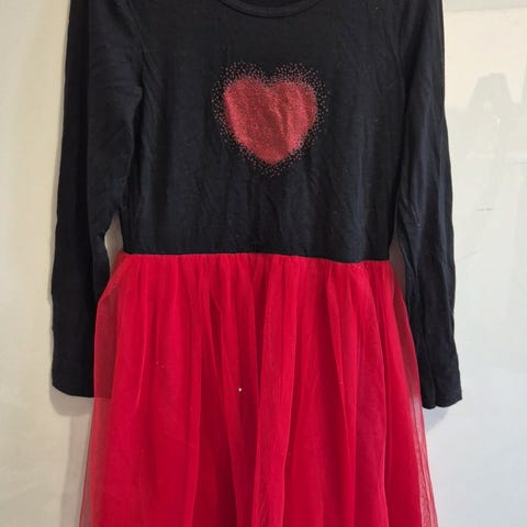 Tytöille suunnattu mekko, koko 128. Mekossa on monivärinen kukka- ja leopardikuosi, jossa on muun muassa vaaleansinisen, violetin ja pinkin sävyjä tummalla pohjalla. Yläosa on kuminauharypytyksellä ja mekossa on ohuet, ristikkäin menevät olkaimet. Helma on suora ja pituus noin polven yläpuolelle riippuen käyttäjän pituudesta. Soveltuu arki- ja kesäkäyttöön tytöille, jotka käyttävät kokoa 128.