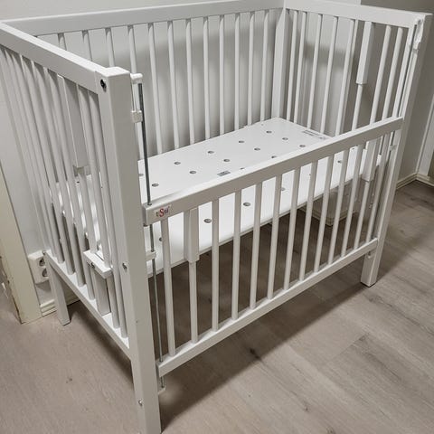 Todella hyvässä kunnossa oleva filikid sivusänky ja patja. Toinen sängynlaita saa laskettua alas ja korkeus säädettyä. Patja uudenveroinen.