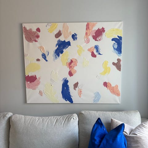 Abstrakti taulu, akryylimaalaus kankaalle. Teoksessa on tummalla, lähes mustalla taustalla orgaanisia, virtaavia muotoja violetein, vihrein, valkoisin ja harmaan sävyin. Yläreunassa on vaaleita, teräväreunaisia muotoja, jotka muistuttavat jääpuikkoja. Maalaus sopii sisustuselementiksi esimerkiksi olohuoneeseen, työhuoneeseen tai muuhun oleskelutilaan. Teos voidaan ripustaa seinälle vaaka- tai pystysuunnassa halutun ilmeen mukaan.