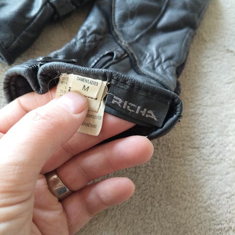 Mustat nahkaiset hanskat. Ranteessa nepparilla säädettävä kiristys. Sopivat moottoripyörä- tai muuhun ajokäyttöön.