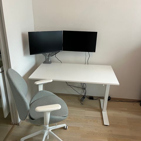 🪑 Hyväkuntoinen kuvassa näkyvä Ikea Trotten Säädettävä Työpöytä on myytävänä.
