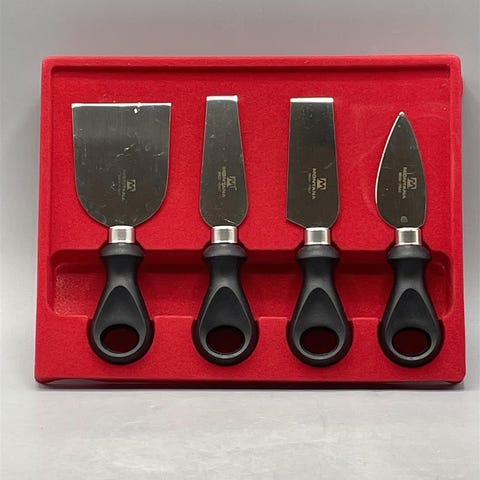 • 4 kpl ruostumattomasta teräksestä valmistettua pihviveistä (yksi sahateräinen, leikkaa helposti pihvin läpi)