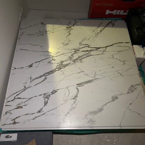 Kylpyhuoneen Italialainen seinä laatta 60x60 on 10 kpl. Musta marmori,laatoittaa 3,5 neliöä. Valkoinen seinä laatta 60x30 20kpl. Laatoittaa 3,5 neliötä Mattonurmiselta ostettu, jäi ylimääräiseksi. Koko läjä 120,00