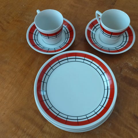 Esteri Tomula "Verkko" käsinmaalattu punainen lautanen 17cm. Vähäisiä käytön jälkiä löytyy. Hinta on yhden kpl mukaan.