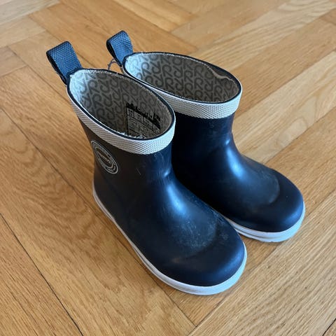 Polarn O. Pyret lasten kumisaappaat, koko 23. Väri musta vaaleilla raidoilla. Unisex-malli, sopii sekä tytöille että pojille. Käytetyt, kunto ulkoisesti kohtalainen, pitävät vettä moitteettomasti.
