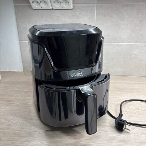 Emerio Smart Fryer AF-117880 airfryer. Musta, pöytämallinen kuumailmakeitin, jossa säädettävä lämpötila ja ajastin. Teho 1500 W, käyttöjännite 220–240 V / 50 Hz. Soveltuu ruoan kypsentämiseen vähällä öljyllä, esimerkiksi ranskalaisten, kasvisten ja muiden uuniruokien valmistukseen. Laitteessa irrotettava paistoastia ja kori helpottavat puhdistusta.