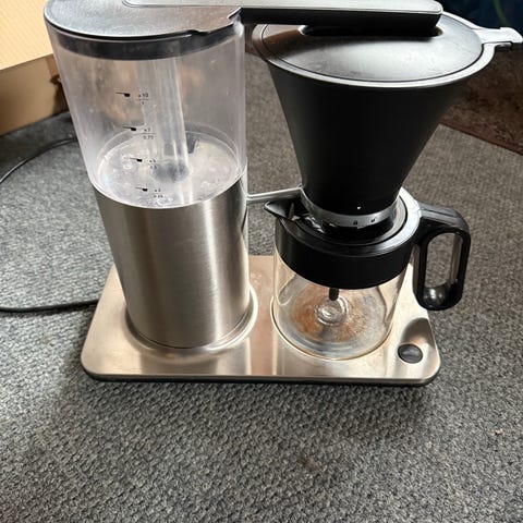 Wilfa kahvinkeitin, käytössä ollut 2 vuotta. Automaattinen tippalukko. Hiljainen, on päällä 40min. Osat pesty koneessa.