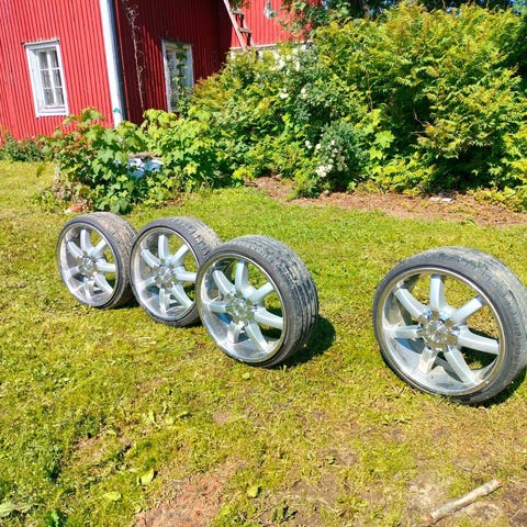 Nyt soviterenkaalla 57.1mm. Renkaat nankang 245/30R20 ajaa kesän tai pari. Yksi keskimerkki uupuu mutta saa tilattua kyllä. Eli köningin Saksassa valmistetut laatuvanteet joissa ajokelpoiset kesärenkaat päällä . Ei sopinutkaan omaan skotaan vaikka korkiampi alusta ! SOPII ainakin audi A6 Mb w212 yms