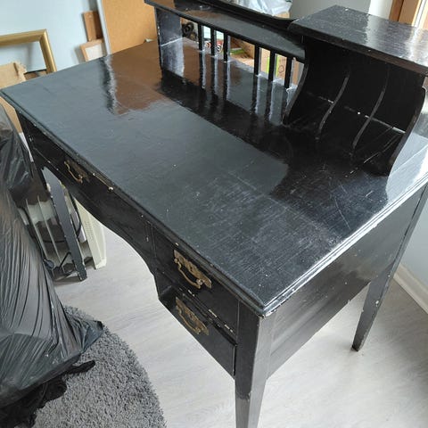 Pieni kirjoituspöytä, ostettu paikallisesti antiikki & entisöinti liikkeestä.