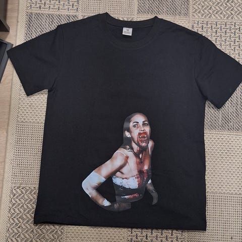 Koko on naisten L, mutta sopii myös kokoon EU38 tai EU40. Paidan on tarkoitus olla väljä.