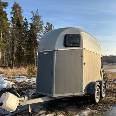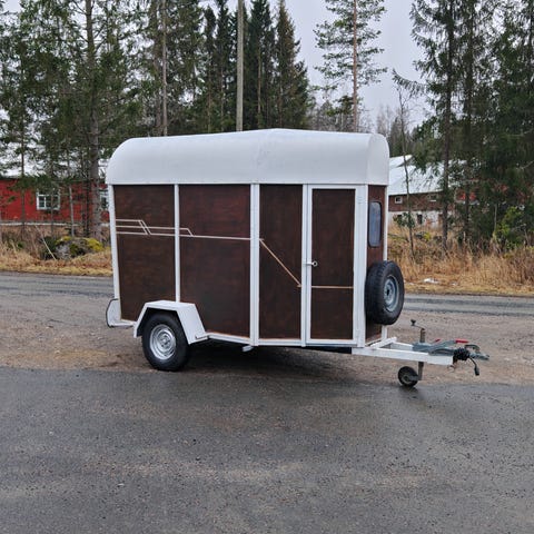 Kahdet renkaat kaksilla peltivanteilla. Talvirenkaat nastoilla. Lisäksi sisäkamera, jolla näkee kätevästi sisään, kun hevonen mukana. Takasilta ja sen kaasujouset uusittu 6/2025.