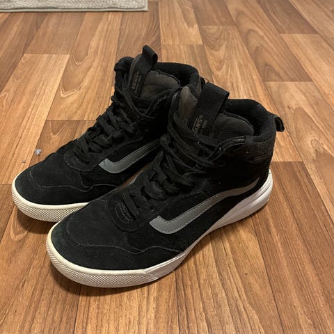 Vans tennarit, koko 42. Väriltään mustat kankaiset nauhakengät, valkoinen kumipohja ja valkoiset tikkaukset. Sopivat arkikäyttöön ja vapaa-aikaan. Reilusti käytetyt, mutta ehjät ja ihan siistissä kunnossa.