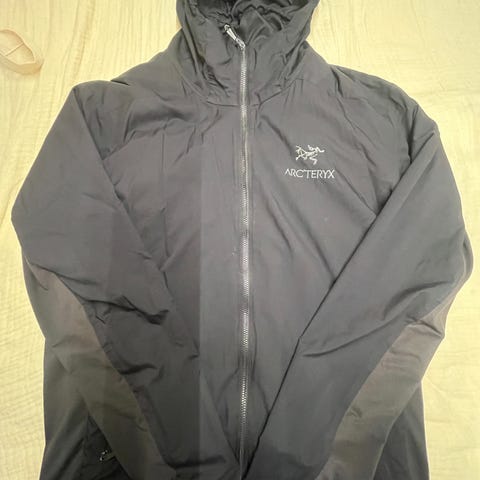 ”Arc'teryx miesten takki, koko XL. Väri musta. Materiaalina polyesteri. Takissa on huppu ja etuvetoketju. Sopii ulkoiluun ja arkeen. Arc'teryx-logo rinnassa.”