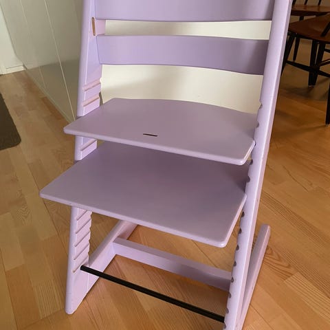 Valkoinen tripp trapp tuoli ja baby set. Oli mummolassa käytössä. Mukana myös kaatumis esto palat.