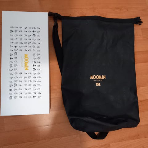 Myyntiin täysin käyttämätön Caamoz Moomin-laukku. Sisällä yksi läpinäkyvä lisätasku, laukku vedenpitävä.