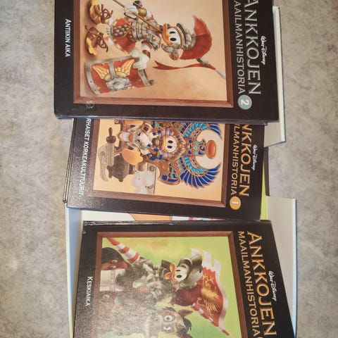 Disney Ankkojen maailmanhistoria kirjasarja, kovakantiset kirjat. Mukana osat 1-5: Esihistoria ja varhaiset korkeakulttuurit, Antiikin aika, Keskiaika ja Uusi aika. Suomenkielinen sarja, jossa Aku Ankka -hahmot esittelevät maailmanhistorian eri aikakausia sarjakuvamuodossa.