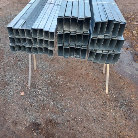 Käyttämätöntä peltirankaa 80 kiskoa, 3m kiskoja.