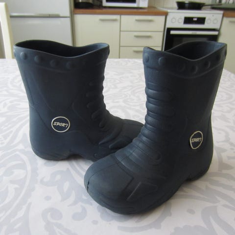 Vaaleanpunaisten merkkiä en löytänyt, mutta ovat vedenpitävät. Punaiset Kuomat, Viking-kengät ja Reiman kengät. Kaikkien pohjat hyvässä kunnossa, vaaleanpunaiset käyttämättömät ja Reiman pohjat kuin uudet.