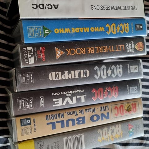 Myyn tosi hyvässä kunnossa oleva VHS kasetti AC/DC Stiff upper lip live konsertista vuodelta 2001. Myyn kun mulla on toinen VHS sekä DVD samasta konsertista.