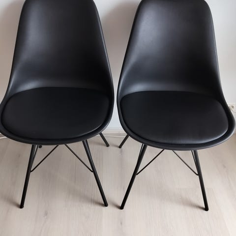 Myydään 2 kpl virheettömässä kunnossa olevia Jysk hammel tuoleja, joissa musta keinonahka verhoilu ja kromiset jalat.