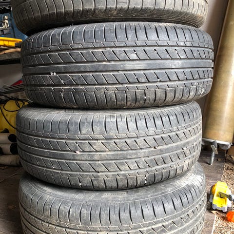 Tosi hyvä kuntoiset renkaat vanteilla. 6mm pintaa ajaa hyvin pitkään.