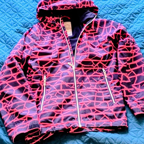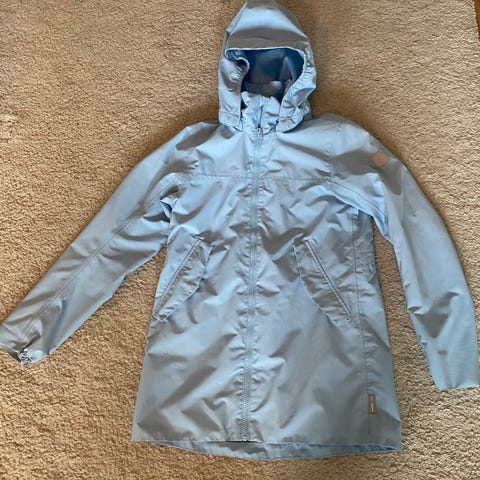 Hyvässä kunnossa oleva turkoosi välikausitakki.