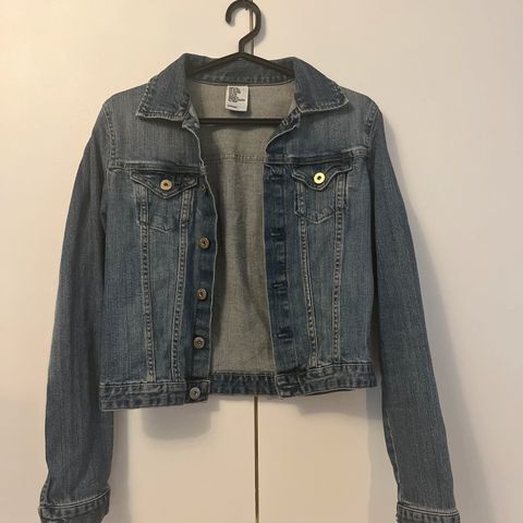 Myydään tussilla ja maaleilla tuunattu farkkutakki, joka sopii 14 vuotiaille (noin 164 cm). Oikealla etupuolella on tekstiä ja takaa löytyy Stichin kuva ja pari kukkaa.