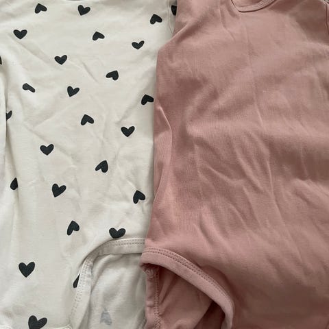 H&M body tytöille, koko 92. Materiaali on puuvillaa. Vaatteessa on lyhyet hihat ja nepparikiinnitys haarassa vaipanvaihdon helpottamiseksi. Väri on vihreä, ja mukaan kuuluu myös vaalea, kuviollinen body kuvien mukaisesti.