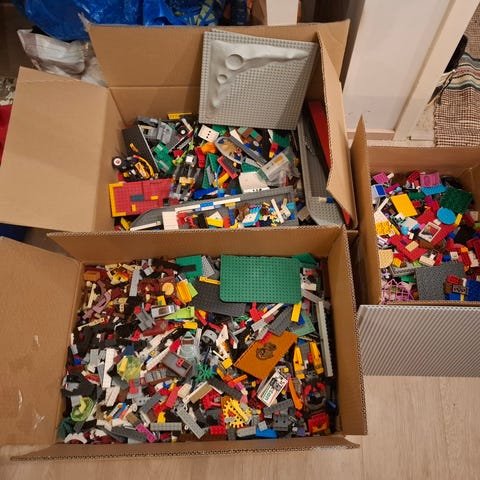 Noin 4kg sekalaisia Legoja. Näiden pitäisi olla suurimmaksi osaksi uudehkoja, hyväkuntoisia ja puhtaita. Ei pitäisi olla kuin pelkästään aitoja legoja ja seassa ei pitäisi olla muita leluja.