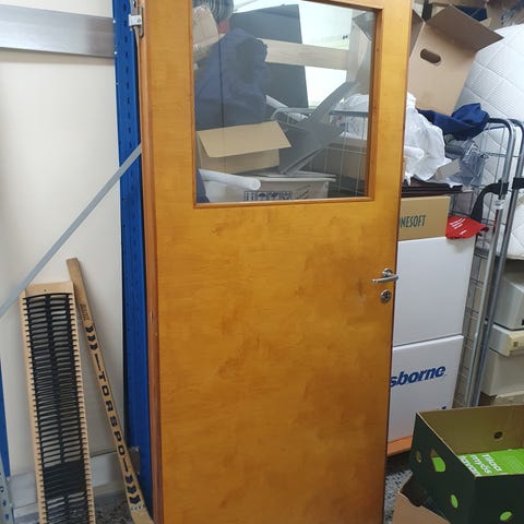 2 kpl 60-luvun vaneriovia. Korkeus 75 cm sis. huulle (0.5 cm). Korkeus 182 cm.