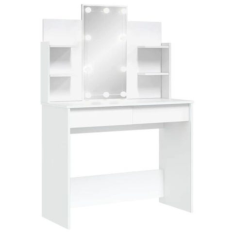 Ajattoman hienostunut meikkipöytä pelillä ja LED-valoilla on mahtava lisä makuuhuoneesi sisustukseen. Se pitää samalla kosmetiikkatuotteesi ulottuvillasi!