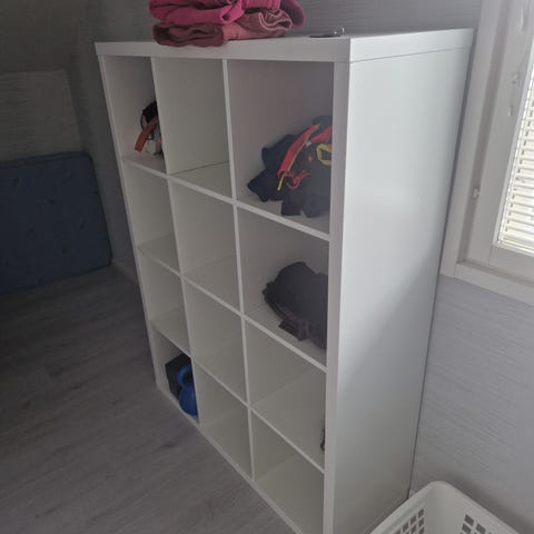 Hyvä kuntoinen lokerikko. Korkeus 109 cm, syvyys 17cm, leveys 47cm Lokeroiden koko,leveys 20cm, korkeus 14cm.