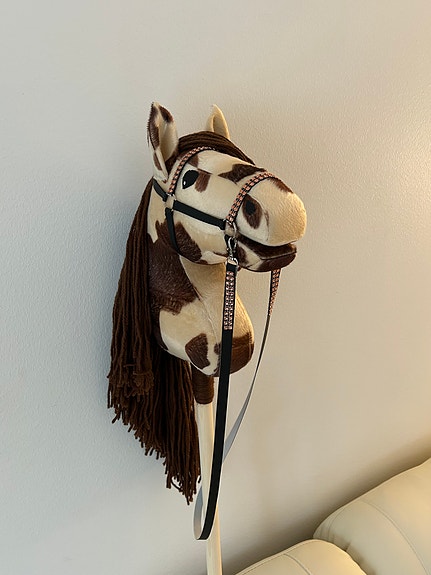 Hevonen ommeltu huolellisesti ompelukoneella. Harja, korvat, silmät ja sieraimet kiinnitetty käsin. Korvissa kovikkeet.
