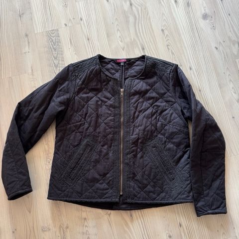 Kaunis jakkumainen kevyt takki yksityiskohtaisilla kirjailuilla ja taskuilla. Puuvillaa.