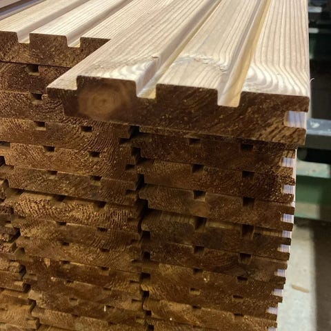 Suoraan höyläämöstä oksaton/vähäoksainen Rimapaneeli 15*95 kainuun mäntyä. 2€/m. Pituus 4800mm-5400m