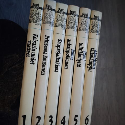 Suuri satukirjasto -sarjan kuvitettuja lastenkirjoja. Kirjoissa on useita klassisia satuja, kuten Prinsessa Ruusunen, Aladdin ja taikalamppu, Ruma ankanpoikanen, Saapasjalkakissa ja muita tunnettuja tarinoita. Kirjat sisältävät paljon hienoja värikuvituksia. Sarja esittelee satuja eri puolilta maailmaa. Hyväkuntoisia ja siistejä. Ainoastaan päälikannet vähän kärsineet.