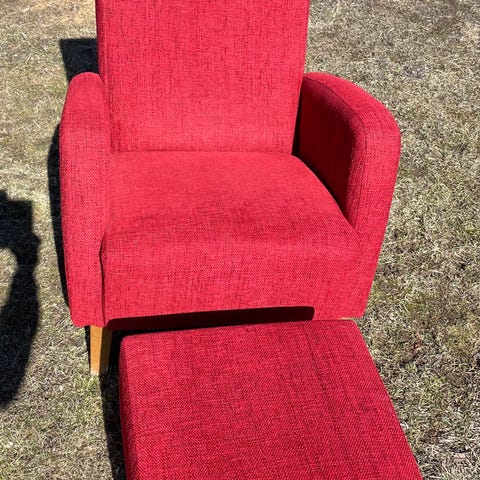 Myydään esimerkiksi sängynpäähän sopiva rahi. Kangas on hyväkuntoinen, jaloissa on jälkiä.