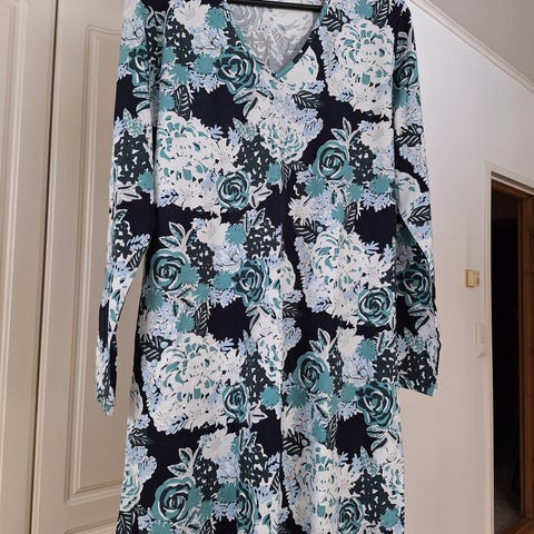 Vihertävän harmaa, Samettikukat Nanson tunika. Mitat: k-k 55 cm, pit. olka-helma 80 cm.