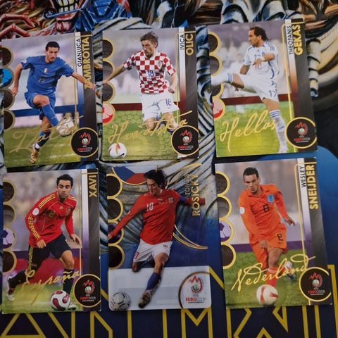 Kortteja on pelaajista, seuroista ja maajoukkueista, mukana mm.