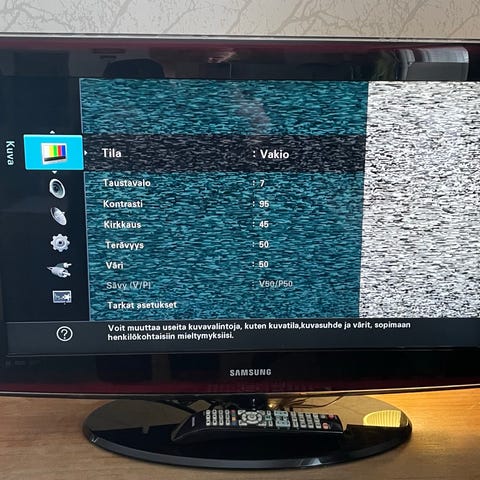 LG 32LV355N televisio, näytön koko 32 tuumaa. Väri musta. Mallikilpi ilmoittaa tehon 80 W ja käyttöjännitteen AC 100–240 V, 50/60 Hz. Valmistusajankohta tammikuu 2012. Soveltuu esimerkiksi olohuoneen tai makuuhuoneen perustelevisioksi antenni- tai muun ulkoisen lähteen kanssa käytettäväksi, liitännät ja tarkemmat ominaisuudet mallin mukaan. Vaatii digiboksin näkyäkseen.