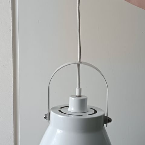 Industrial tyylinen teräksinen kattovalaisin. Halkaisija leveimmillään 45cm, lasin halk. 39cm.