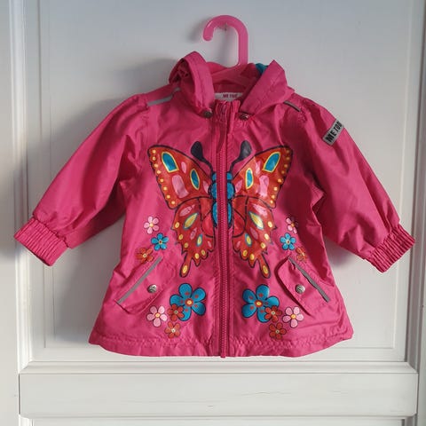 Myydän välikauden takki koko 80. Takki ehdittiin käyttää muutama kertaa ennen kuin jäi pieneksi.