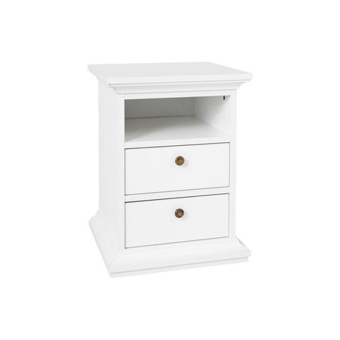 Paris on ajaton ja käytännöllinen yöpöytä, jonka kaksi vetolaatikkoa ja yksi avoin hylly tarjoavat mukavasti säilytystilaa.