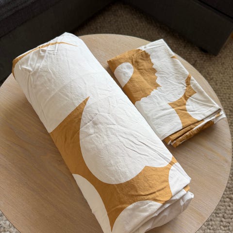 Kaksi 210 x 150 cm unikko pussilakanoita.
