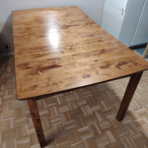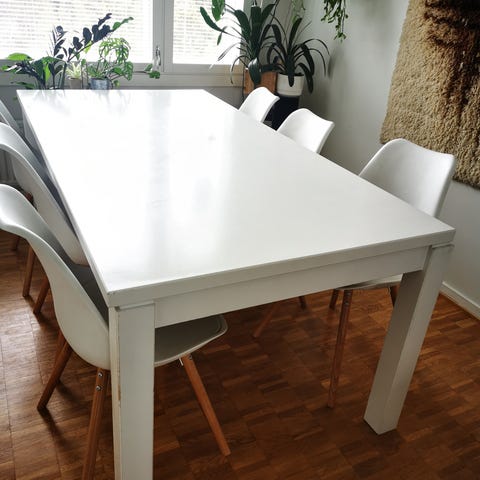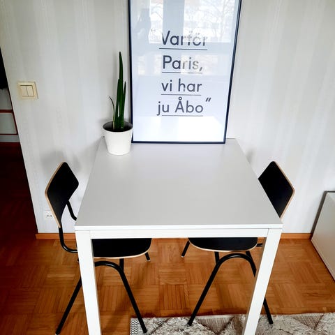 Kuin uusi Ikean valkoinen ruokapöytä. On tukeva eikö heilu vaikka onkin Ikean tuotantoa!